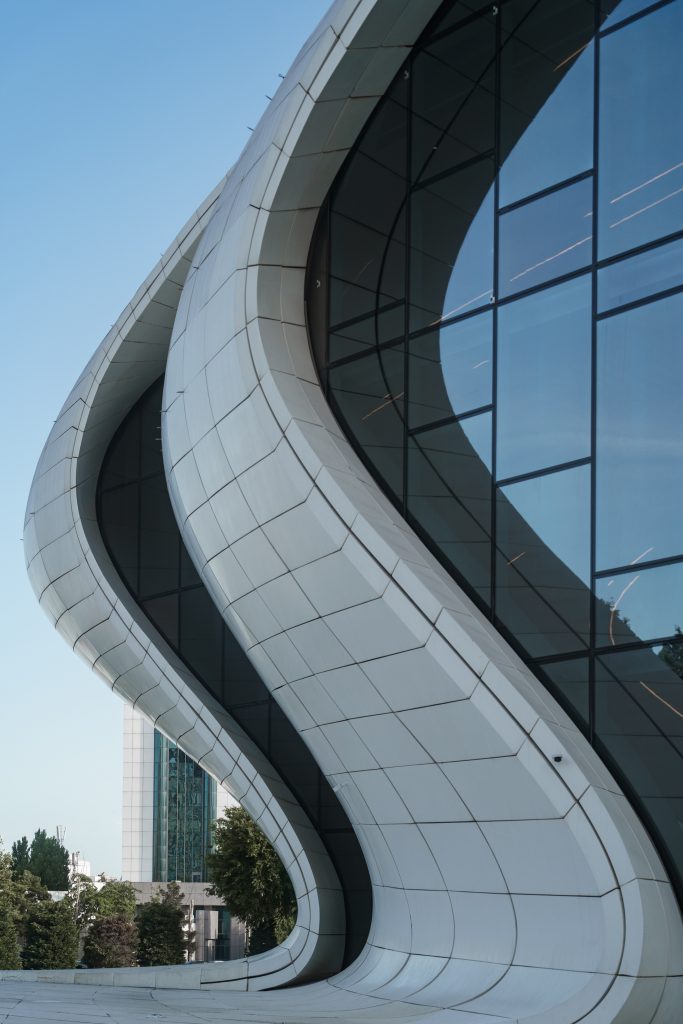 C’è un luogo a Baku dove l’architettura smette di essere geometria e diventa movimento. Dove le linee si piegano come onde, la luce scivola sulla superficie come acqua, e la materia sembra respirare.