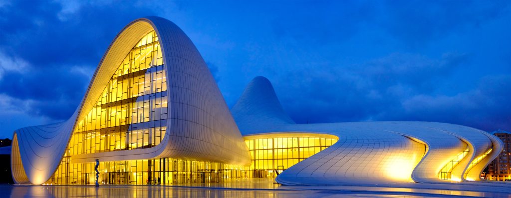 Il progetto nasce all’inizio degli anni 2000, quando il governo azero affida a Zaha Hadid l’incarico di realizzare un centro culturale e congressuale dedicato a Heydar Aliyev, il padre fondatore dell’Azerbaijan moderno.