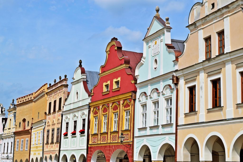 Dopo un devastante incendio nel XVI secolo, il nobile Zachariáš z Hradce decise di ricostruire il borgo fino a trasformarlo in una “città ideale” ispirata ai modelli italiani. Così, ancora oggi, la Piazza di Zachariáš z Hradce è un palcoscenico a cielo aperto con muri colorati in stile rinascimentale e barocco, eleganti portici e tetti a punta. Ogni casa è una piccola opera d’arte, spesso decorata con la tecnica dello sgraffito, una sorta di ricamo su pietra, che dona alla facciate un aspetto tridimensionale.